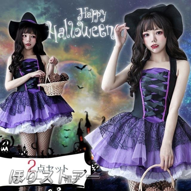 ハロウィン衣装 魔女 ハロウィン コスプレ ワンピース レディース 2点セットコスチューム 魔女ハット 大人用 魔女 コスプレ ハロウィーン 仮装 変装