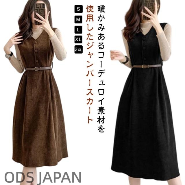 ジャンパースカート ジャンパースカート 冬 春 ノースリーブ レディース ワンピース 50代 大人 コーデュロイ ジャンスカ Vネック ロング Aライン 厚手 ボタンデザイン カジュアル きれいめ 通勤 オフィス レイヤード 重ね着 コーデ オールインワン おしゃれ