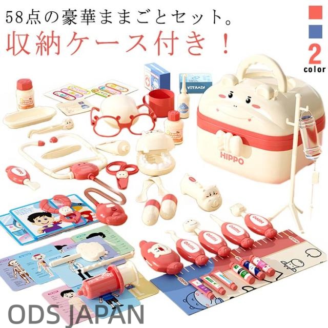 豪華 58点セット 歯医者ごっこ遊び 玩具 おままごとセット お医者ごっこ 収納ケース付き おもちゃ ままごと遊び 医者さんごっこ ままごと 知育玩具 ごっこ遊びトイ ミニドクター 診察道具 聴診器 子供 誕生日