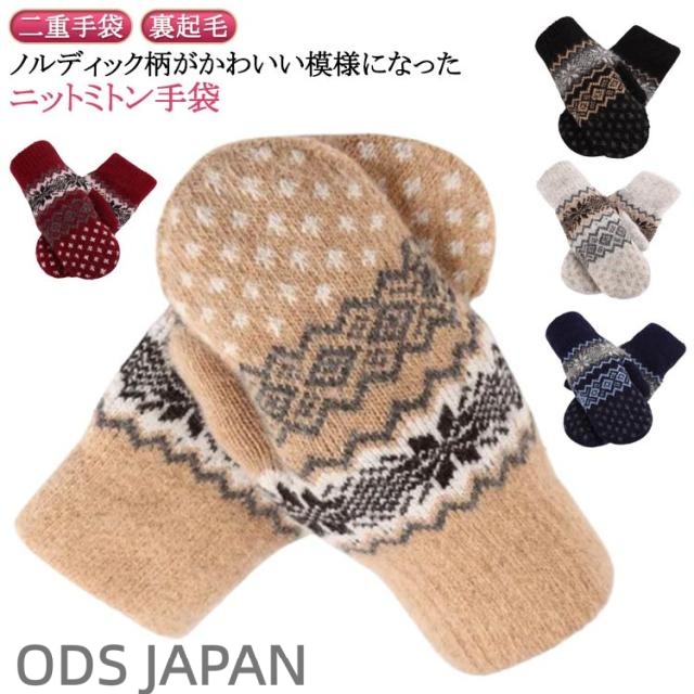 かわいい 手袋 ニット手袋 秋冬 二重 厚手 ミトン手袋 レディース 手ぶくろ ニット 防寒 暖かい ノルディック柄 グローブ 冬 二重 防寒 ハンドウォーマー あったか ミトン 保温 おしゃれ 通勤 通学 アウトドア 北欧柄 雪柄 大人可愛い