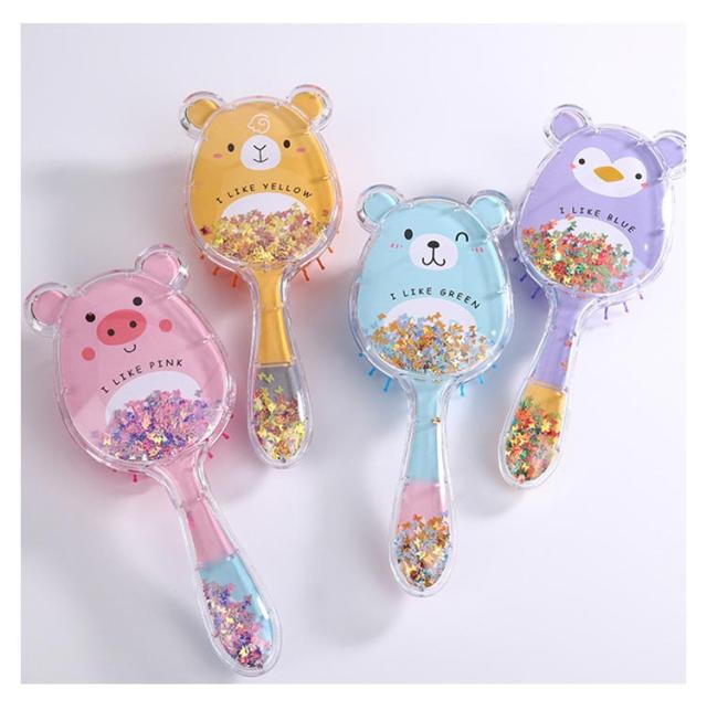 ヘアブラシ 櫛 クマ型 コーム くし 子供 キャラクター 髪の毛 キラキラヘアブラシ かわいい 女の子 男の子 ヘアブラッシング ヘア 頭皮ケア ヘアケア マッサージ ヘアブラシ 絡まない プレゼント ギフト コンパクト