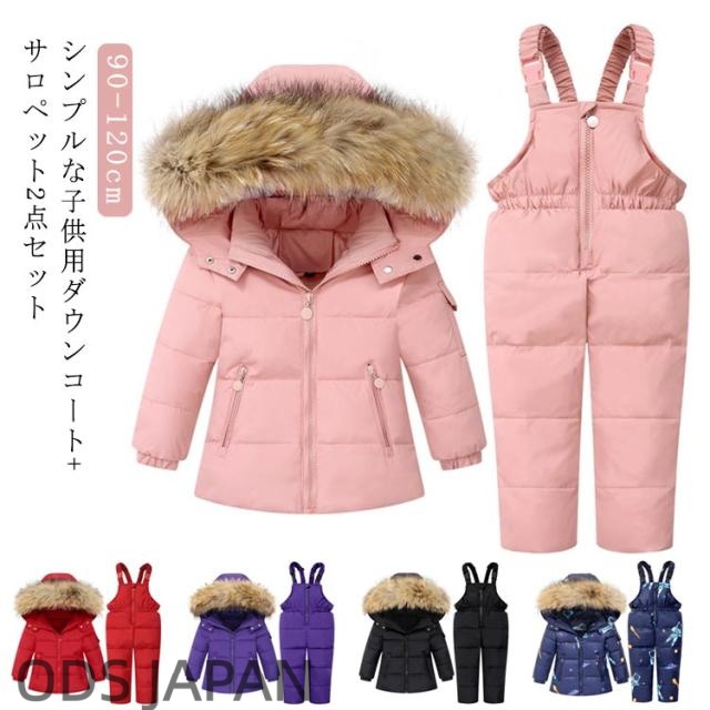 ファー付き 100 女の子 ダウンアウター スキーウエア つなぎ スノーウエア 2点セット 厚手 ベビー服 ダウンコート サロペットパンツ カバーオール ジャンプスーツ 男の子 アウトドア 雪遊び 90 スノーウエア 110 120