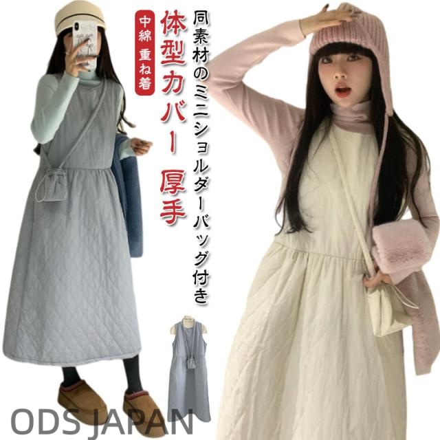 ロング 春 レディース ジャンパースカート ワンピース ジャンパースカート ノースリーブ ジャンスカ 厚手 冬 キルティングワンピース 中綿 クルーネック あったか 体型カバー キルティング カジュアル 大人 コーデ レイヤード