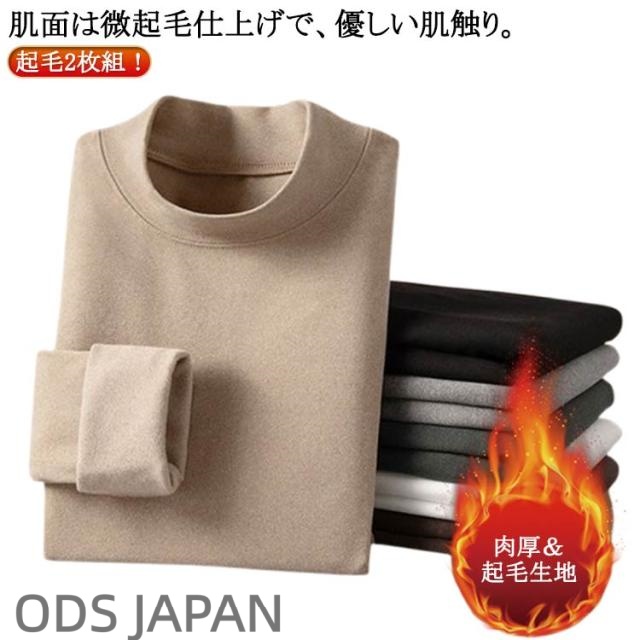 | 起毛2枚組!肌面は微起毛仕上げで、優しい肌触り。 高密度の素材が熱を逃がさず、起毛が空気を溜めるヒート構造により、暖かくご着用頂けます。 ストレッチ性に優れた素材なので、着心地ラクラクです。 シンプルで着回しやすいので、 一枚は持っておきたいアイテムです。 冬の寒い時期はジャケット、ベスト、カーディガン、コート等のインナーとして大活躍間違いなし! | |