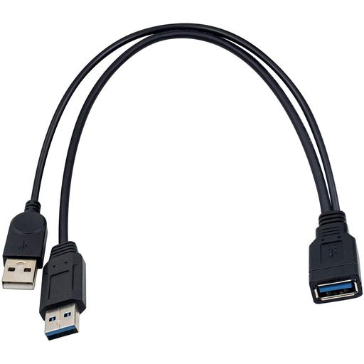 USB 3.0 二 股延長ケーブル,2 つの USB (オス) コネクタがあり、1 つは充電とデータ転送をサポートできる USB 3.0 に使用され。もう 1 つは充電のみに使用され、データ転送をサポートしない USB 2.0 です。