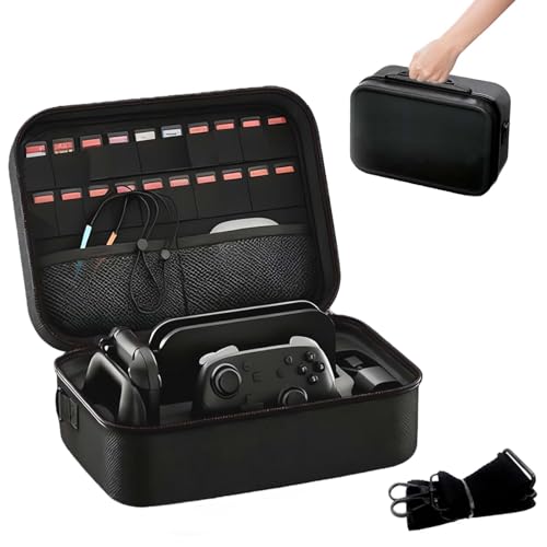 ・超大容量設計Switch 2用収納ケース大容量仕様で Switch 2 本体やアクセサリーのほか、モバイルバッテリー、データケーブル、21 枚のゲームカートリッジまで一括収納可能。Switch 2本体、Joy-Con、対応ドックなど、すべての付属品をすっきり収納できます、反対側のジッパーコンパートメントには他のアクセサリーを収納できます。