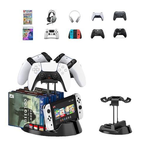 幅広い互換性&プロフェッショナルなデザイン他の製品との違いは、PS 5/Switch互換ゲームディスク6枚だけでなく、ゲームカード8枚、そして最も重要なゲーム機本体を収納できることです。本コントローラースタンドには、PS5 / PS4 / PS3 / PS2 / Xbox One / Xbox Series X / S / Xbox 360コントローラーおよびSwitch Proコントローラーに適し、最大3つまで収納できます。スタンド土台にSwitch、Switch OLEDやスマホを横置きして収納できます。卓上ヘッドホンスタンドとしても使用できます。