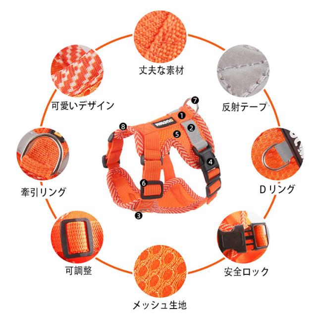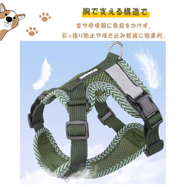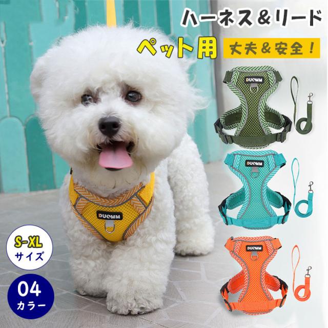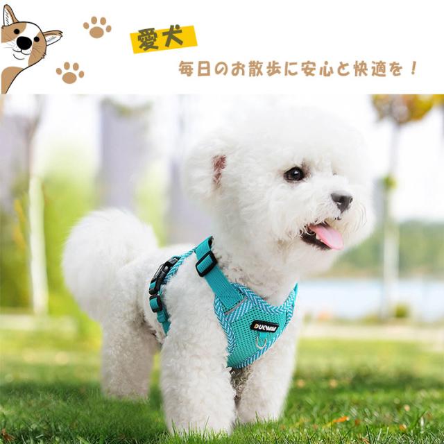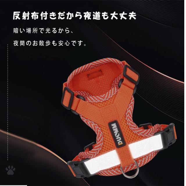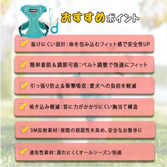 犬 ハーネス リードセット 超小型犬 中型犬 胴輪 ベーシックハーネス 抜けない 簡単着脱 調節可能 引っ張り防止 咳き込み軽減 衝撃吸収 3M反射素材 通気性 散歩 お出かけ