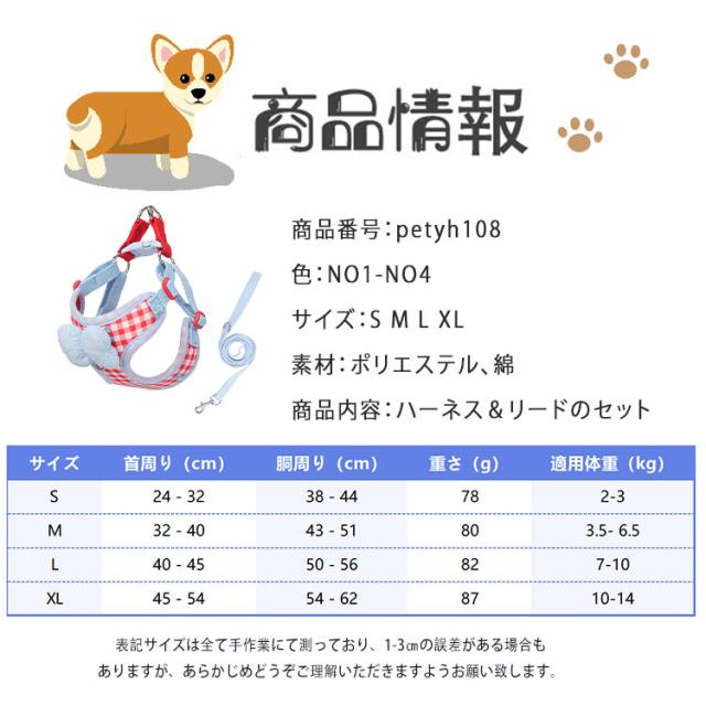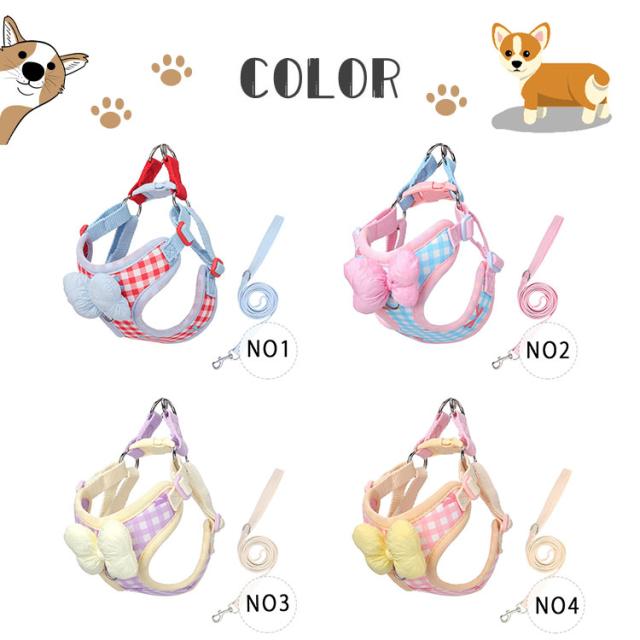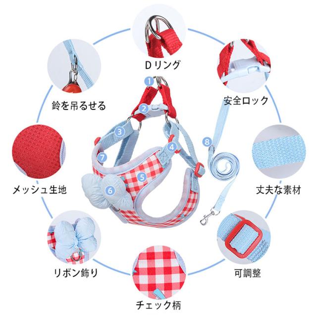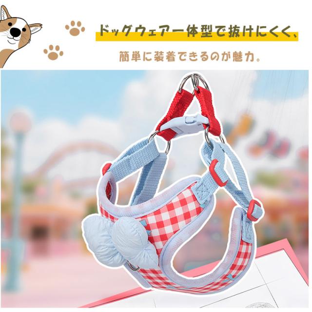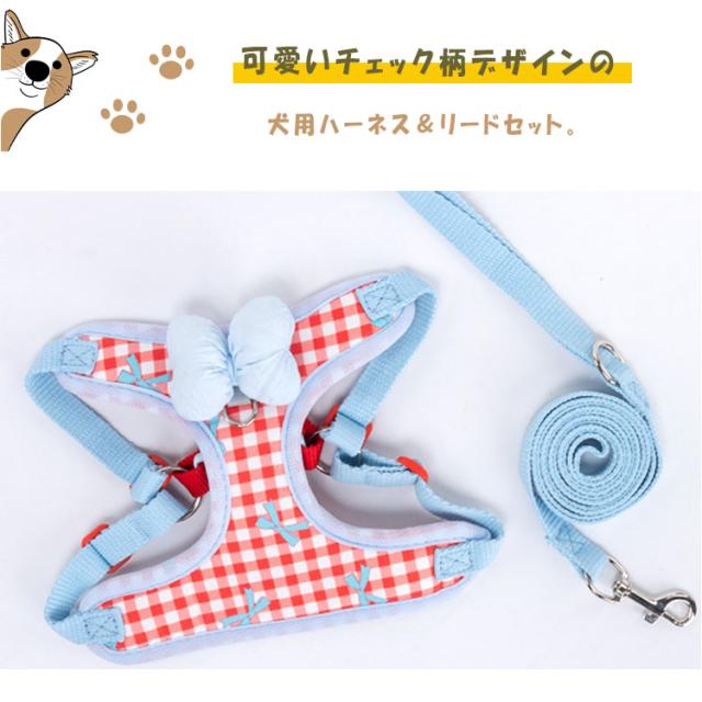 商品名 | 犬 ハーネス リード付き 小型犬 中型犬 チェック柄 可愛い おしゃれ 簡単装着 軽量 メッシュ素材 抜けない ダブルロック ドッグウェア一体型 胴輪 S M L XL |