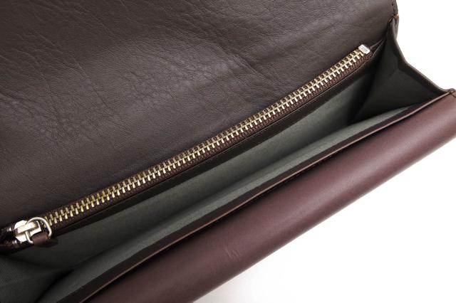 フルタンニンのオイル革を使用しており、使い込むほどに風合いが増す長財布。牛革の質感とツヤ感が魅力的で、深みのあるオイルレザーが高級感を演出します。日本製で精巧な作りの財布は、独特なダブルフラップデザインが特徴で、実用性とデザイン性を兼ね備えています。内部はカード段が10あり、他にも複数のポケットとファスナー付きポケットを備えており、収納力も抜群です。外側にもポケットが一つあり、小物をすぐに取り出せるように配慮されています。