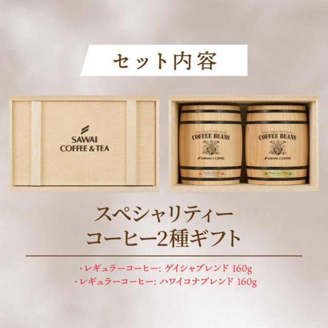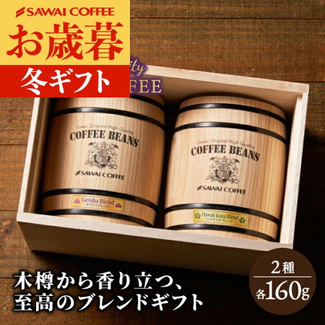 お歳暮 コーヒー豆 コーヒー粉 送料無料 珈琲豆 ゲイシャ ブレンド ハワイコナ ブレンド 160g×2樽 ギフト 中挽き/豆のまま 焙煎したて 福袋 大容量 飲み比べ 澤井珈琲 御歳暮 冬ギフト