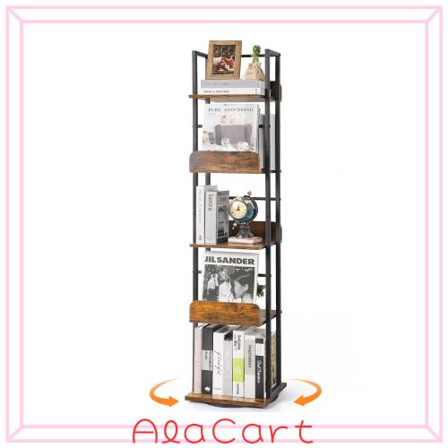 VINAEMO 回転本棚 5段 大容量 スリム コンパクト 360°回転 漫画ラック 絵本棚 タワーラック コミックラック ブックタワー 床置き 本棚