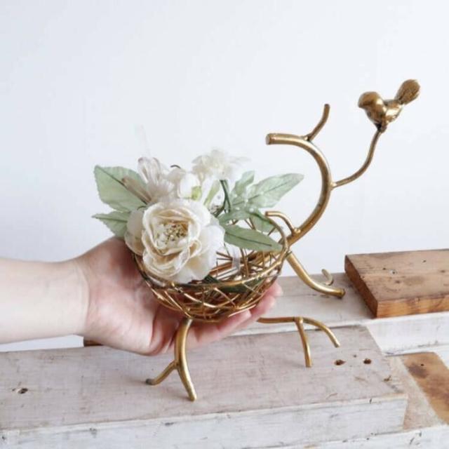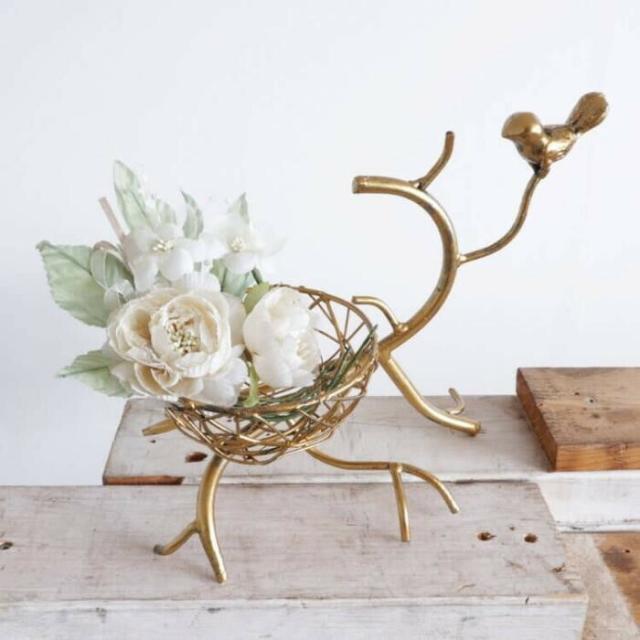 小鳥&フラワーベースアレンジメント 造花付 2104IFH005