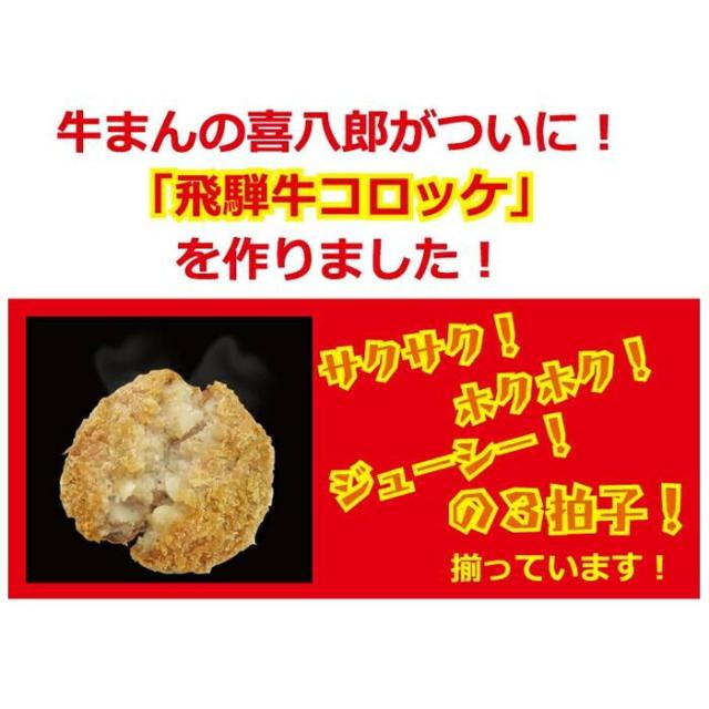 | 旨みたっぷりジューシーな飛騨牛が入った、飛騨牛の旨みと懐かしい素朴な美味しさが調和する「飛騨牛コロッケ」です。180度の油で5分揚げていただくと、「サクサク!」「ホクホク!」「ジューシー!」な飛騨牛コロッケの出来上がり!おやつにもおかずにも◎。ソースなしで楽しめる味付けになっております。ジャガイモ本来の味わいとホクホク食感、飛騨牛の旨味、衣のサクサク食感で十分美味しく食べていただけます! |