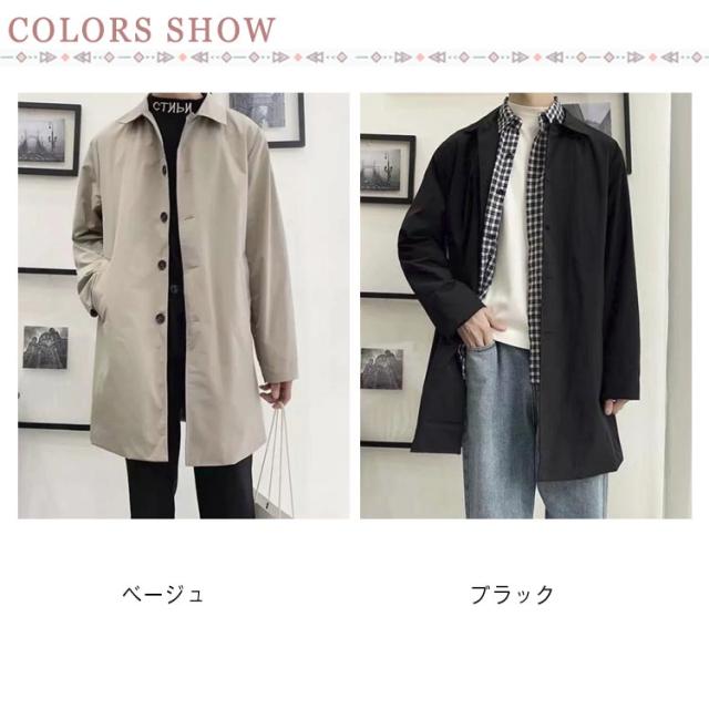 定番 メンズコート 薄手 バルカラー スプリングコート ステンカラーコート 仕事 軽量 春 ミドル丈 コート メンズ 黒 ビジネスコート 膝上 ステンカラーコート 軽い 男性 秋 ビジネス 通勤 防風 無地 コート 20代 30代