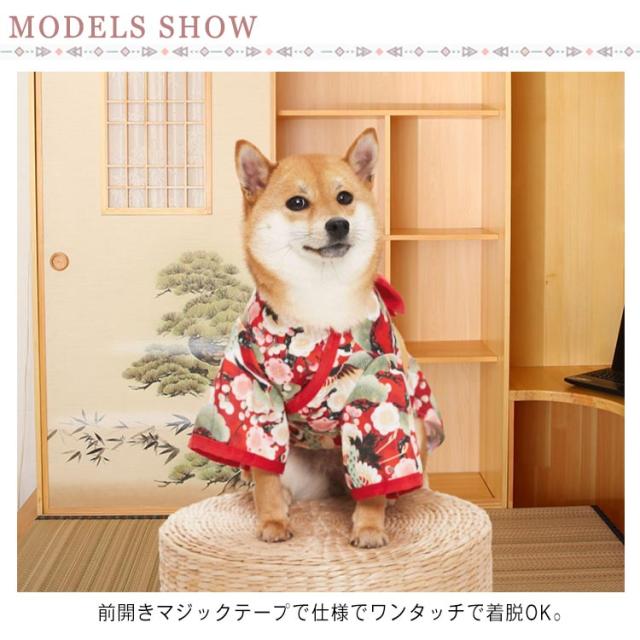 | お洒落な和柄のペット着物です。 前開きマジックテープで仕様でワンタッチで着脱OK。 帯はしっかりと縫い付けてあるので着用時にほどけたりすることなく結び直しも不要で楽ちん。 お正月や初詣、年賀状の撮影記念日に。七五三や成人式などのお家族のお祝いにもぴったりです。 シンプルで可愛いデザインは、おいぬさま限らずおねこさまにもおすすめ! | |
