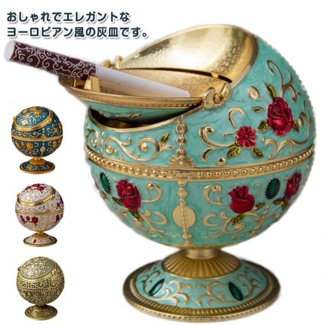 地球儀型 ローズ柄 ミニスタンド ホワイト iqos灰皿 屋外 シルバー 球型 ゴールド 金属製 花柄 ヨーロピアンアンティーク風 薔薇の模様のふた付き 屋外 はいざら ふたつき 卓上 レトロ 灰皿 アンティーク調 灰皿 大容量 おしゃれ