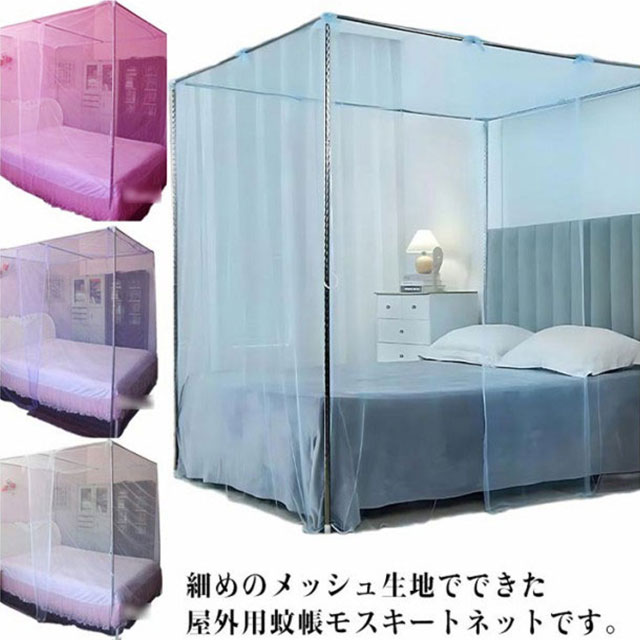 | 細めのメッシュ生地でできた屋外用蚊帳モスキートネットです。 細かいメッシュ仕様なので通気性抜群 、蚊や蛾などの羽虫の侵入をブロック。 中央部に入口があり、出入りも簡単。 普通の蚊帳に比べて、目が細かく、蚊などの侵入を防ぎやすくなっております。 長い取付用の紐が付いているので、自分のお部屋に合わせて、紐を調節、カットしながら使用できます。 折りたたんで持ち運び楽々。キャンプやBBQ、ピクニック、ハイキング、天体観測など様々なアウトドア活動に大活躍。 | |