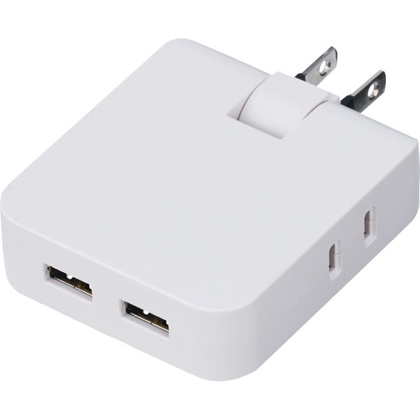 USB2ポートとコンセント2口を搭載。変換アダプターが不要なため、充電環境がスマートに。・スリムな形状でプラグ部分は収納可能。持ち運びに便利です。