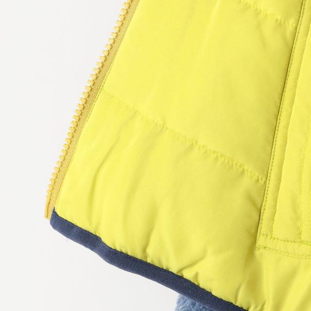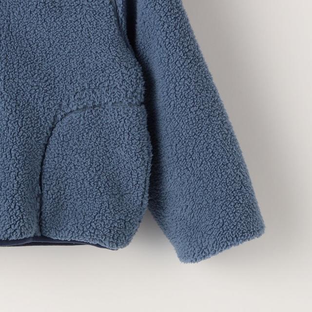 ボリューム感のある柔らかなボールボア素材と中綿入りで暖かいタフタ生地のジャケット。両面のデザインを楽しめるリバーシブル仕様になっています。