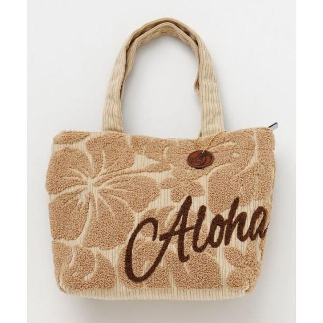柔らかなコーデュロイ素材に、ハワイを感じられるハイビスカス・モンステラ・プルメリアデザインが施された、サガラ刺しゅうのミニトート。大胆なデザインながら、同系色でまとめているため、派手過ぎず、コーディネイトにも自然となじみます。開口部はファスナーで、中身が見えにくく、内ポケットも付いているので、小物の整理もスムーズです。合皮タグがアクセントに。