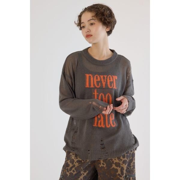 メッセージダメージニットトップス