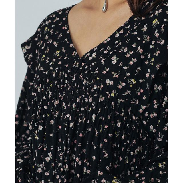胸下のシャーリング切り替えが女性らしいシルエットを生み、リラックス感のある着心地も魅力です。