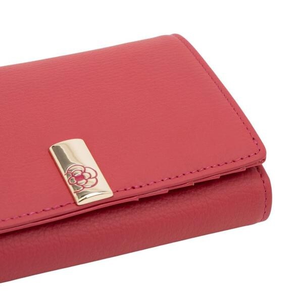 上質なシボ感のある柔らかな牛革と、心躍るカラーバリエーションが魅力の「エクセ」シリーズ。取り外し可能なタッセルチャームがアクセントとなり、お手持ちのキーリングやポーチへのアレンジも楽しめる仕様です。どのタイプにも上品なゴールド金具とさりげないカメリアの刻印をあしらい、細部にまでこだわった仕上がりです。カメリアには本体カラーと同じ色を流し込むなど、クレイサスらしい上品さと遊び心を融合させました。【メーカーサイズ寸法(実寸)】サイズ:H:10/W:13/D:4.5/重さ:160g/背面フリーポケット:1/ファスナ−小銭入れ仕切り有:2/札入:2/カードスロット:12/フリー:5