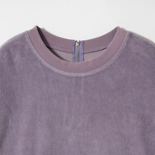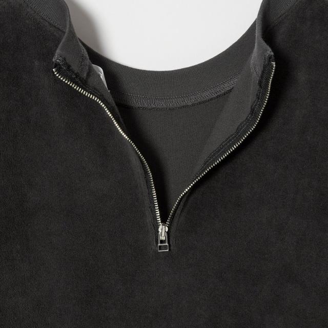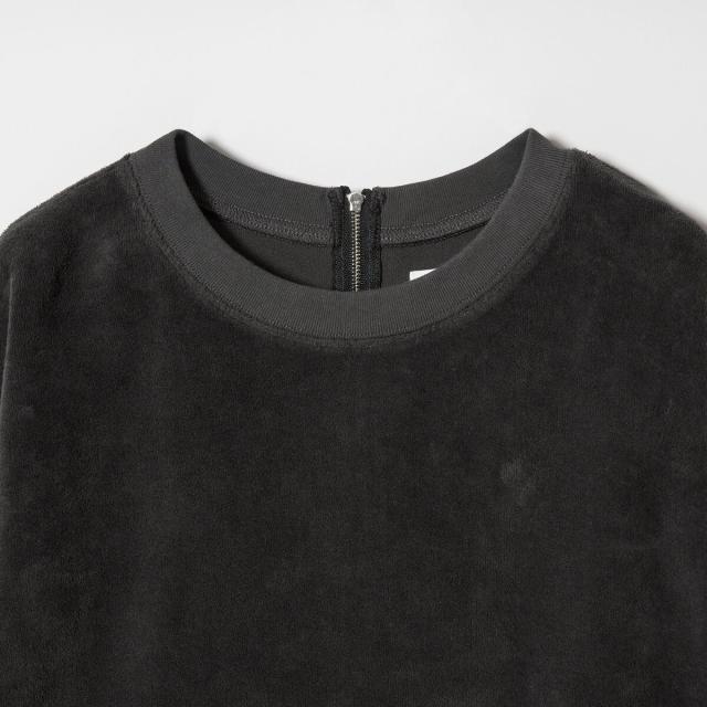 オゾンウォッシュ ベロア バックジップ クルーネック