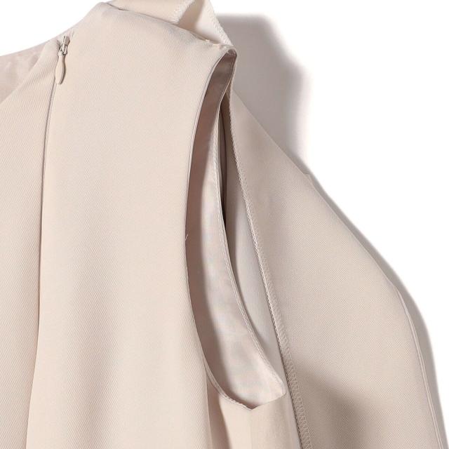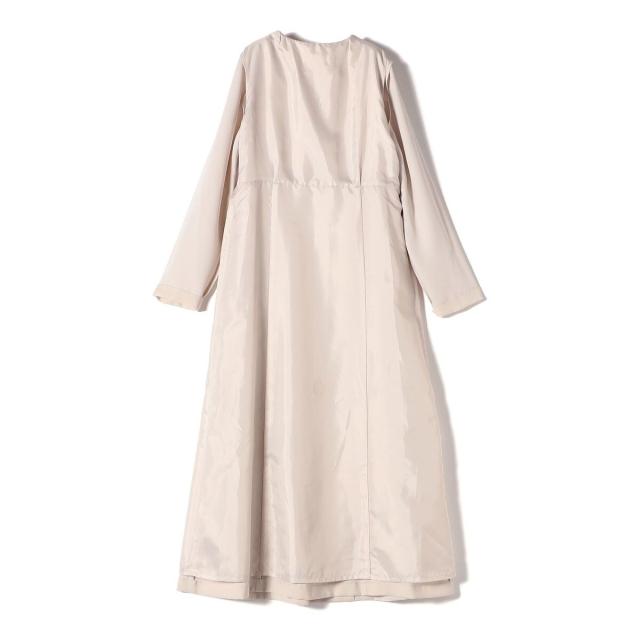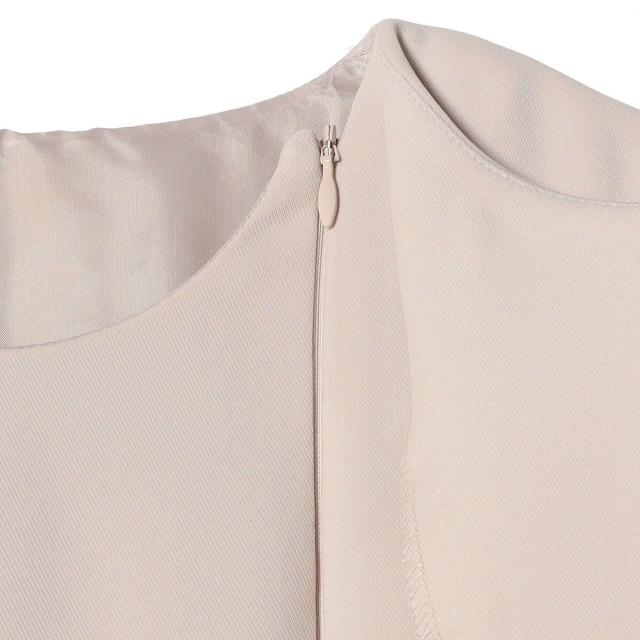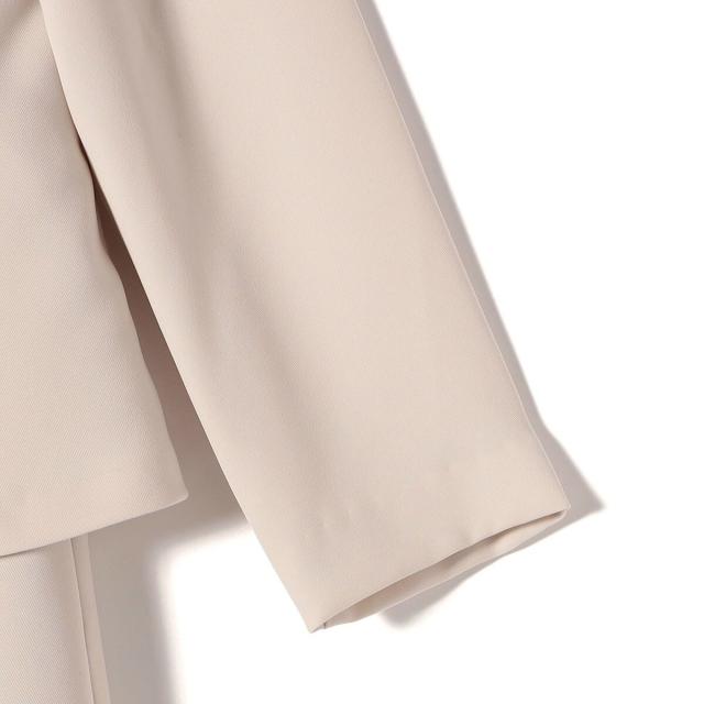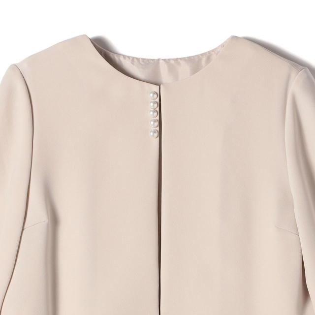 セットアップのように見えながらも、ジャケットとワンピースがつながっているため、着用中の着崩れを防ぎ、美しいシルエットをキープします。