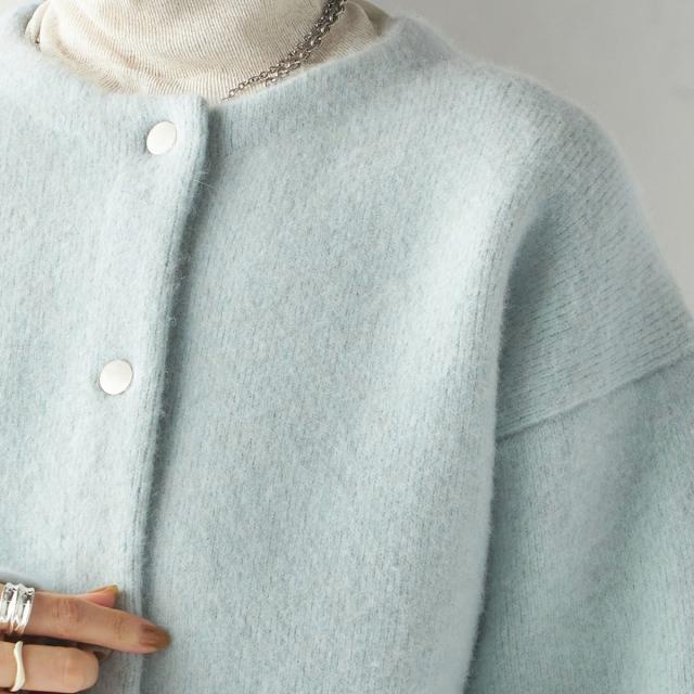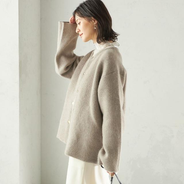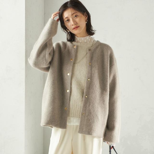 フォックス ブレンド ノーカラー ニット コート