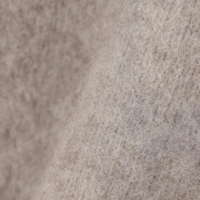 表面はフォックス混の糸、裏面はポリエステル糸でダブルフェイス組織でしっかり編み上げた素材です。