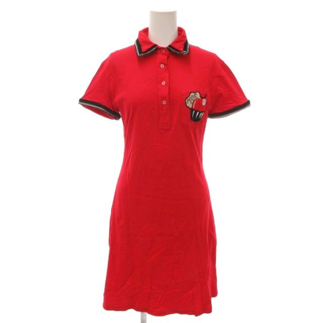 【中古】アナスイ ANNA SUI ポロワンピース ミニ丈 チュニック 半袖 リボンフリル L 赤 レッド /NU レディース