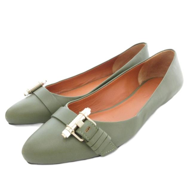 【中古】ジバンシィ GIVENCHY フラットシューズ バレエパンプス アーモンドトゥ レザー 革 バックル 37.5 緑