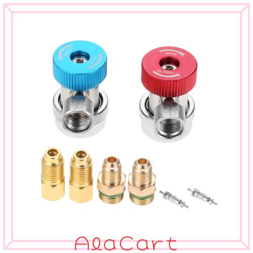 【プレミアム品質】AC R-134a用の低圧/高圧のクイックアダプターは100%新品で高品質の真鍮素材とアルミ合金素材で作られ、頑丈なフィッティングで、長持ちするように設計されています。