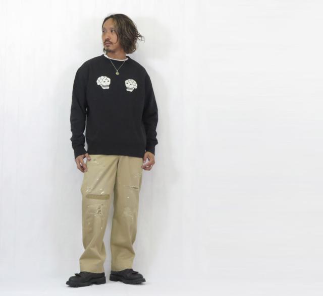 ヴィンテージでは現存する数が極めて少なく、群を抜いて希少価値の高い髑髏柄を今季はスウェットシャツでリリース。