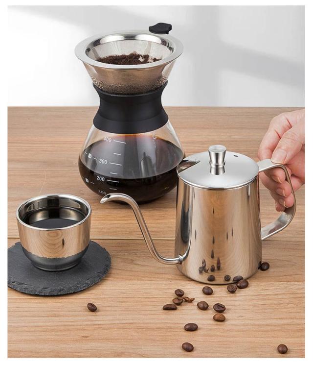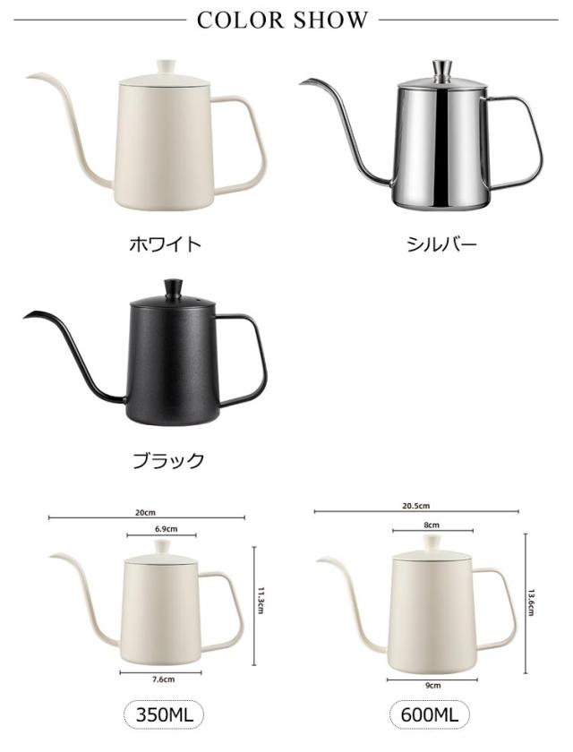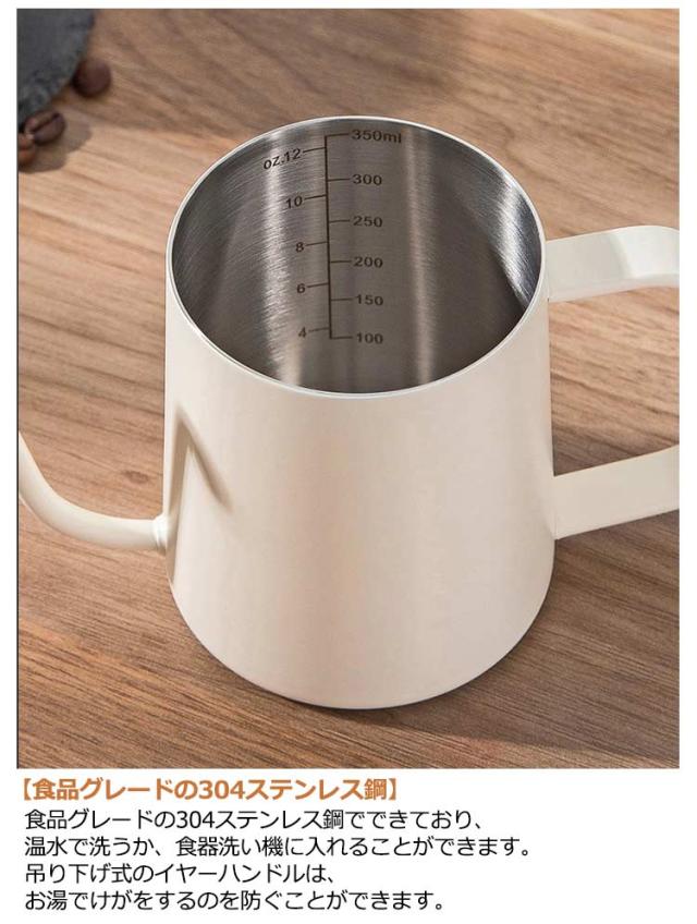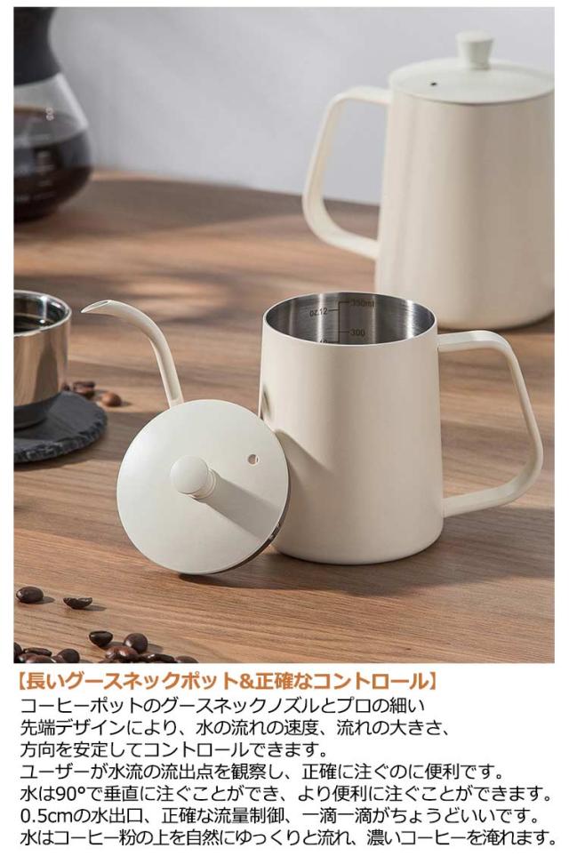 コーヒードリップポット IH対応 細口ポット 600ml コーヒードリップポット 注ぎ口 350ml コーヒーポット 目盛り付き ステンレス製 ドリップケトル 直火対応 コーヒー器具 キャンプ用コーヒー ケトル 旅行用コーヒーメーカー 自宅用 おしゃれ シンプル