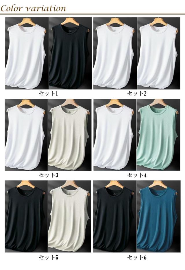 メンズ スポーツウェア 2枚セット 2枚セット タンクトップ ひんやり 無地 涼しい 袖なしTシャツ トレーニングウェア ジム ノースリーブ ランニング トップス 運動着 接触冷感 体育祭 筋トレ 爽快 速乾 涼感 ルームウェア 20代30代40代50代