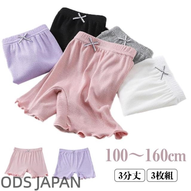 3枚セット 女の子 スパッツ 3分丈 オーバーパンツ キッズ 子供 下着 ショーツ インナーウエア ジュニア 子ども かわいい オーバーパンツ キッズ ペチパンツ インナーパンツ 幼稚園 保育園 小学生 ペチコート アンダーパンツ 通学 通園 フリル 裾