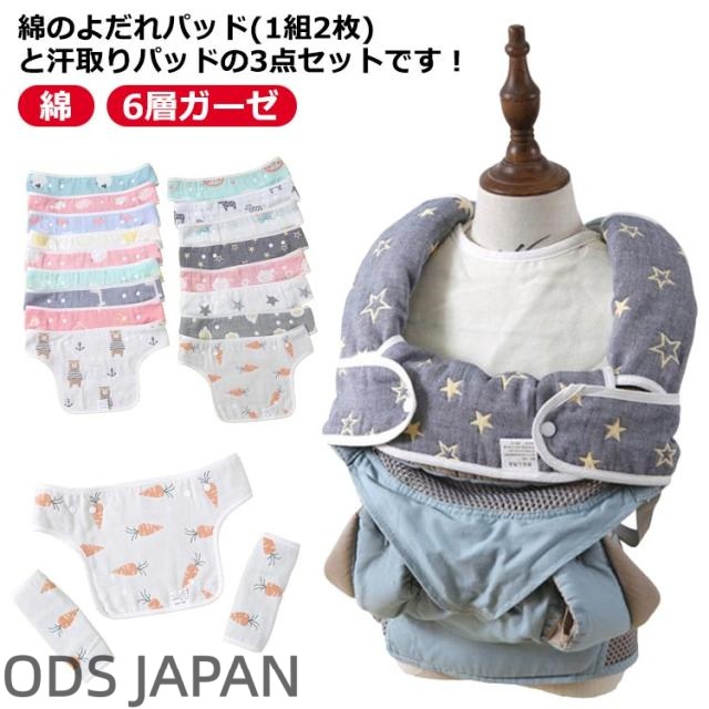 6層ガーゼ 3点セット 抱っこ紐 よだれカバー コットン サッキングパッド 綿 抱っこひも よだれカバー よだれパッド おんぶ紐 抱っこ紐カバー カバー ベビー用品 ベビーカー/チャイルドシート/シートベルト カバー 赤ちゃん かわいい おしゃれ