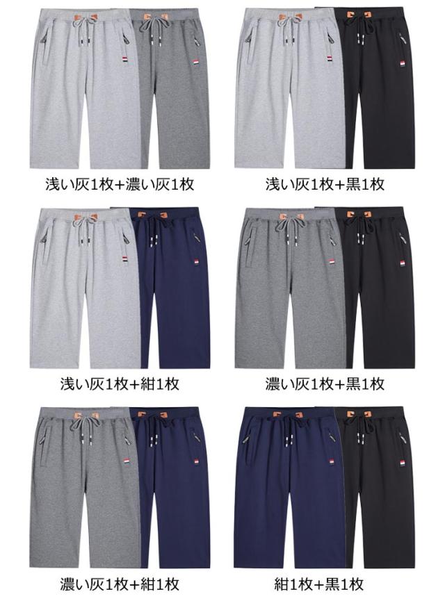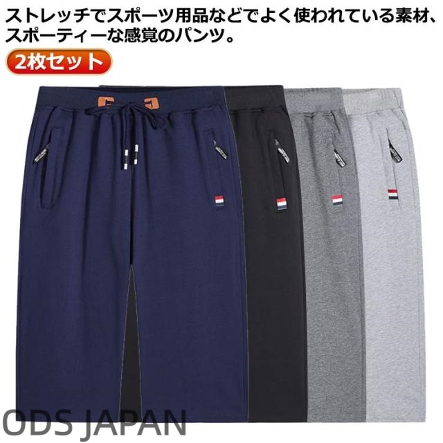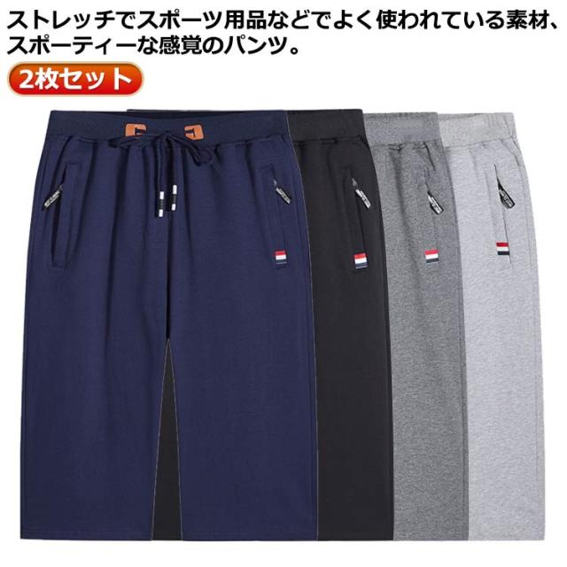 ジャージ ショートパンツ パンツ 下 メンズ スウェットパンツ 接触冷感 ひんやり 涼しい スポーツ ジャージパンツ 膝下丈 クロップドパンツ ハーフパンツ 2枚セット!7分丈 ダンス ゴルフウェア ランニング ストレッチ ジャージパンツ