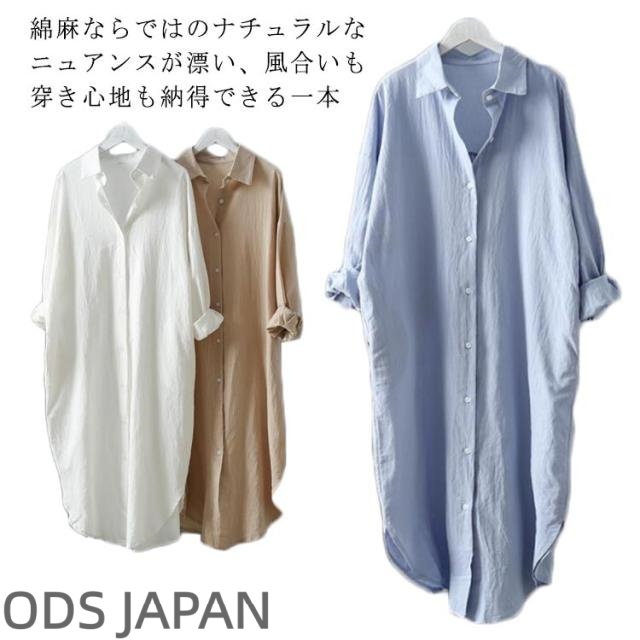 ロング ロングシャツワンピース ワンピ 大きいサイズ シャツワンピース 綿麻 秋 夏 綿麻 ワンピース ロングシャツ 春 ワンピース 長袖 紫外線対策 白