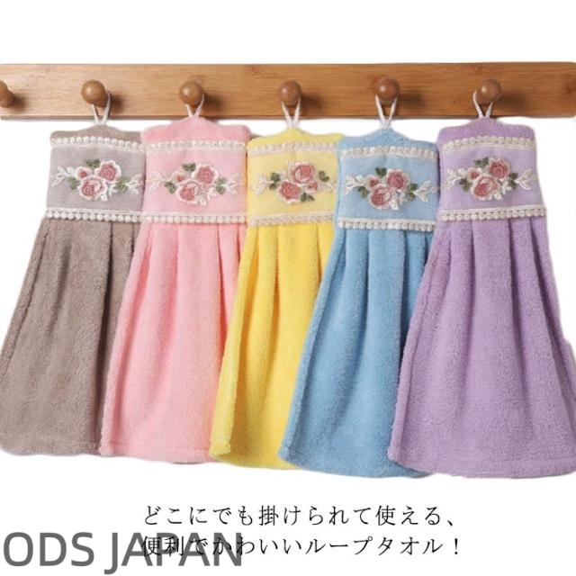 かわいい ハンドタオル ループタオル ループタオル ひも付き ループ付タオル バラ 刺繍 ひも付きタオル 刺繍