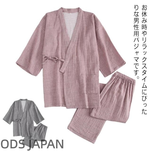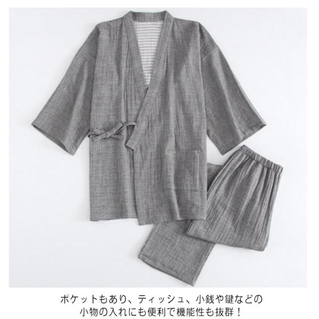 コットン 和風 パジャマ 部屋着 上下セット 寝間着 旅館 2点セット 甚平 ルームウェア 寝巻き 男性 前開き 通気性 肌触り良い メンズ