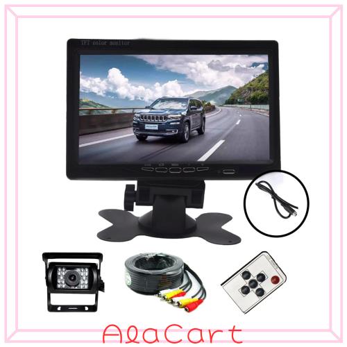 7インチTFT液晶モニター・オンダッシュ固定スタンド・専用リモコン・電源ケーブル・バックカメラ・角度固定・取付ねじ・電源ケーブル