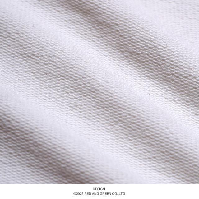 生地は、ヘヴィーウエイトのパイルニット。肉厚でヘビーなビジュアルとしっかりした生地感でシルエットをキープ。コットン100%なので、毛玉ができにくく、吸汗性に優れソフトな肌触りが実感できます。