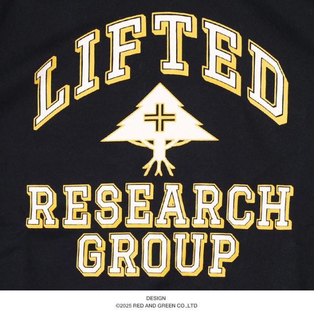 「TREE LOGO」と共に、ブランド正式名称の「Lifted Research Group」をカレッジロゴでオン。