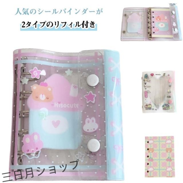| 人気のシールバインダーがNEWデザインで登場☆【2タイプのリフィル付き】 リング式だからページの入れ替えも自由自在。お気に入りのシールやメモをコレクションして、自分だけの手帳にカスタマイズできます。 表紙は柔らかいPVC素材で汚れや傷が付きにくく、長期間大切なシール帳を保護することができます。 M5(12.8x10.8cm)サイズで持ちやすく、パステルカラーで見た目もかわいい! シールのコレクションにピッタリです♪ ギフトにもおすすめの、韓国風ステーショナリーです。 | |