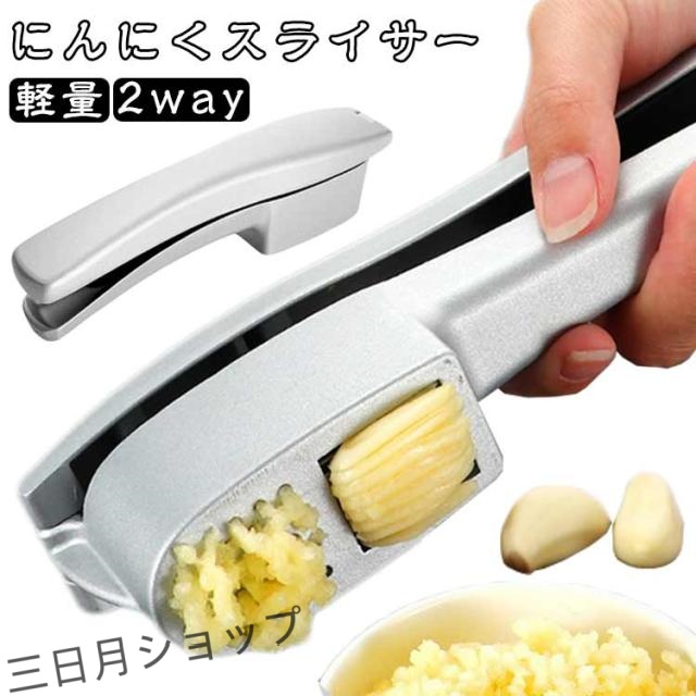 にんにくスライサー スライスにんにく ガーリック 2way にんにくスライサー おろしニンニク ニンニク潰し ステーキ ニンニクおろし器 パスタ ガーリックプレス スライス キッチン 調理器具 アルミ ショウガ