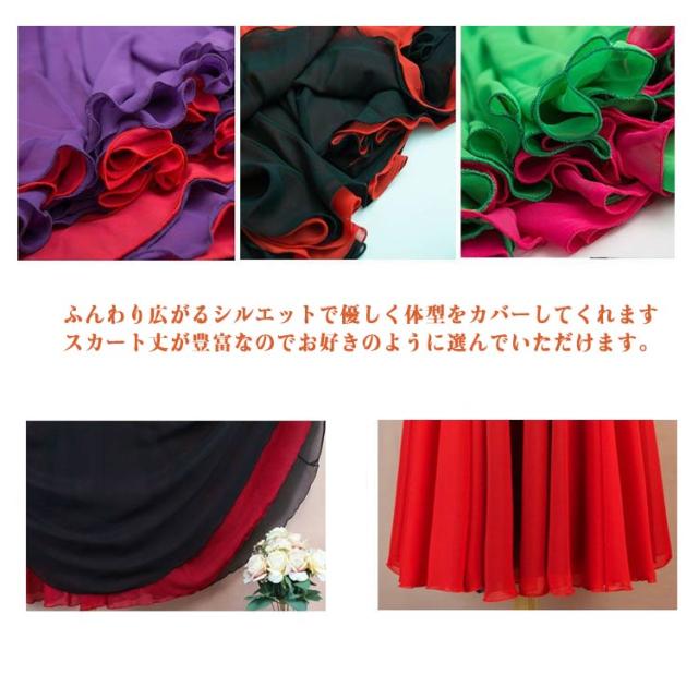 広がる フレアスカート リバーシブル リバーシブル 85cm 95cm ダンススカート 100cm 社交ダンススカート ロングスカート ベリーダンス XS ダンス衣装 フラメンコ ラテンダンス 大きい裾 レッスン社交ダンス 80cm S M L